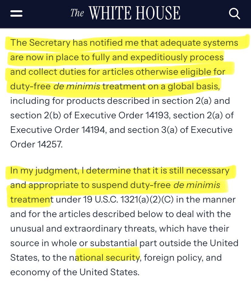 2) The Secretary mentioned above and here is the Secretary of Commerce Howard Lutnick. He’s the guy who set up the system that will force you to pay $80 to $200 to receive anything you buy online that ships from another country. I also have some dirty laundry on him. See next⬇️