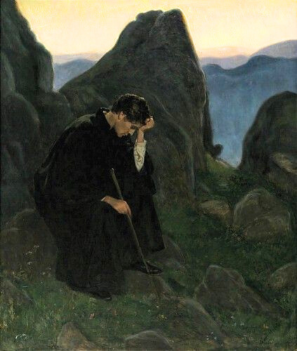 He clings to evil, yet is disgusted by evil, as if he has a guilty conscience
