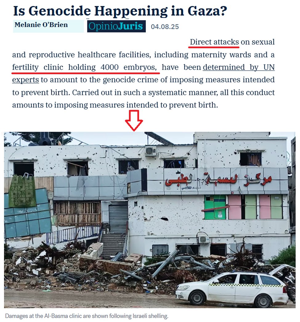 I could add dozens of posts debunking each genocide "evidence" O’Brien links to. Here’s one. She says Israel “directly attacked” a fertility clinic with 4,000 embryos. But news reports note nearby shelling, no sign of a targeted strike, and clinic still stands. Not genocide. 11/