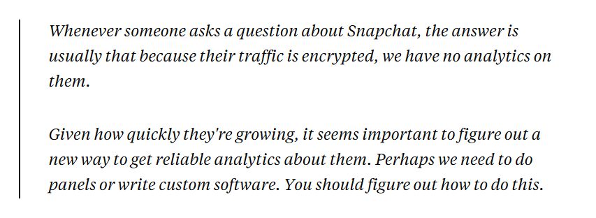 • A goldmine of data for Facebook’s M&A, growth, and product strategy.