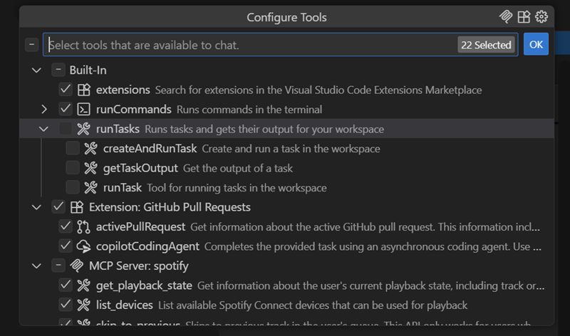 We revamped the tool picker experience. Now you can expand or collapse tool sets, MCP servers, and extensions with smooth sticky scrolling and enhanced icon rendering for better navigation.