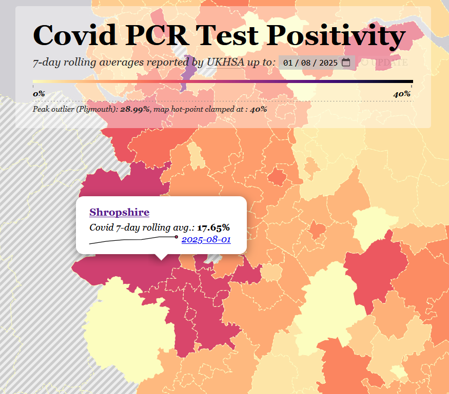 Lots of those areas are now not reporting, but we can see rising positivity in Gloucs, Worcs, Bucks, and particularly W Berks.