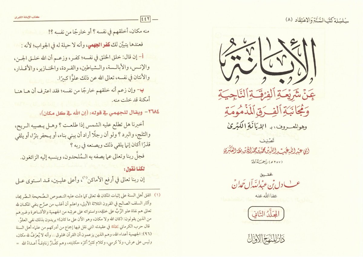 These, and many more are [found] in the Qurʼān. But the cursed Jahmīyyah, Muʾtazilah, Ḥulūliyyah abstained from this and denied it. They cling to its mutashābih, seeking mischief due to [their] deviation in [their] heart, because all the Muslims have known many places, and it is not permissible for there to be from their Lord, except His Knowledge and Greatness. His Power and His Essence, the Exalted, is not in it. So did the Jahmīyyah claim that the place of Iblīs is the one in which Allāh is gathered and He is in it? Rather, the Jahmīyyah claimed that Allāh is in a state of Iblis. Do they (Jahmīyyah) claim that the people of Hell are in Hell, and that The Exalted, The Great, The Generous, is with them in it (Hell)?!