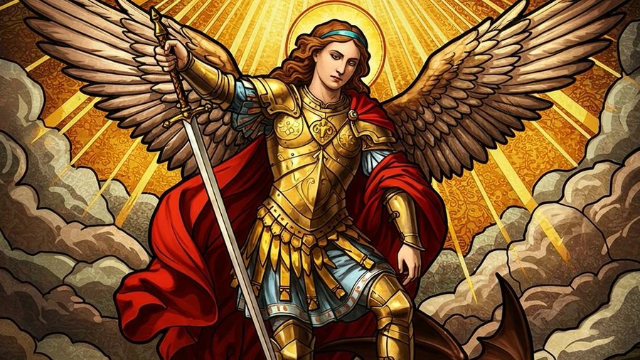 Suddenly, Saint Michael the Archangel appeared to him, radiant and commanding: