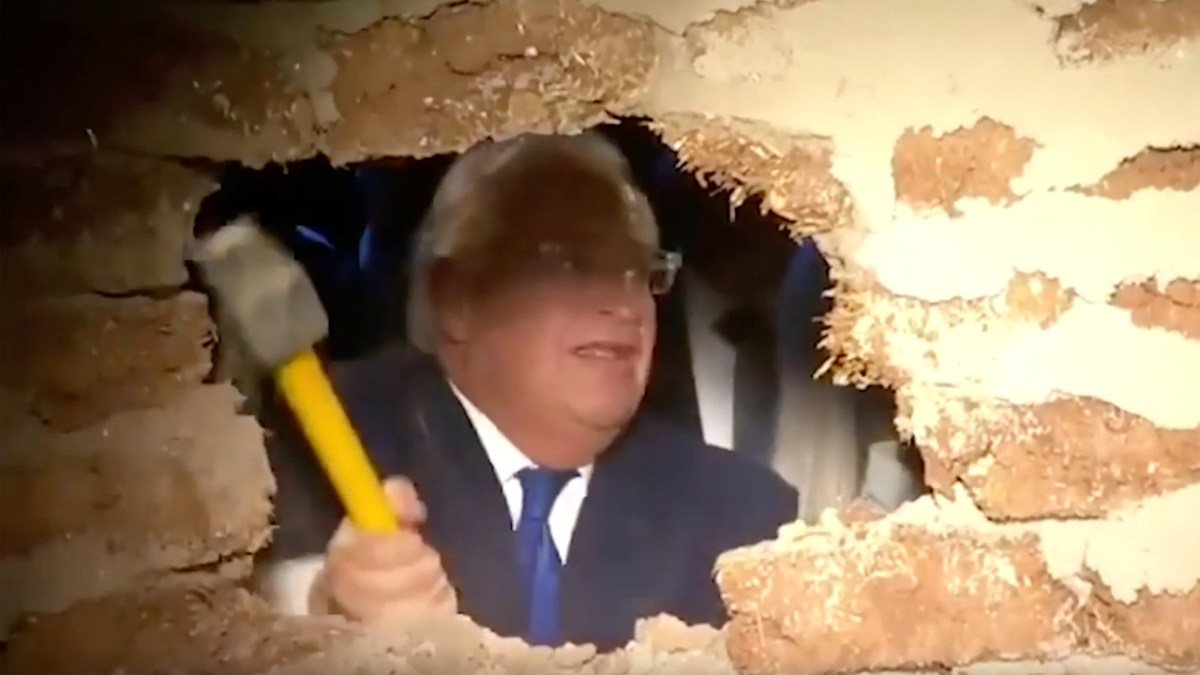 Here David Friedman, Trump's Ambassador to Israel, wielding the axe at the ceremonial opening of the underground passage in 2019.