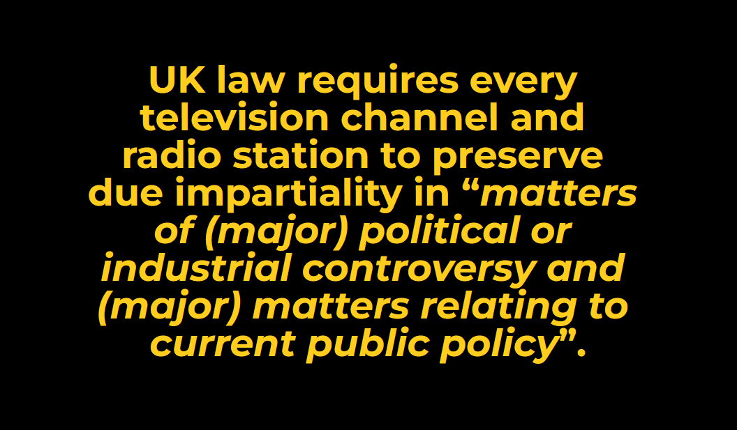In the UK, since 1990, 'due impartiality' and 'due accuracy' have been fundamental components of broadcasting - especially for news and current affairs - and imho are essential for a well-informed citizenry and a fair-minded functional democracy.