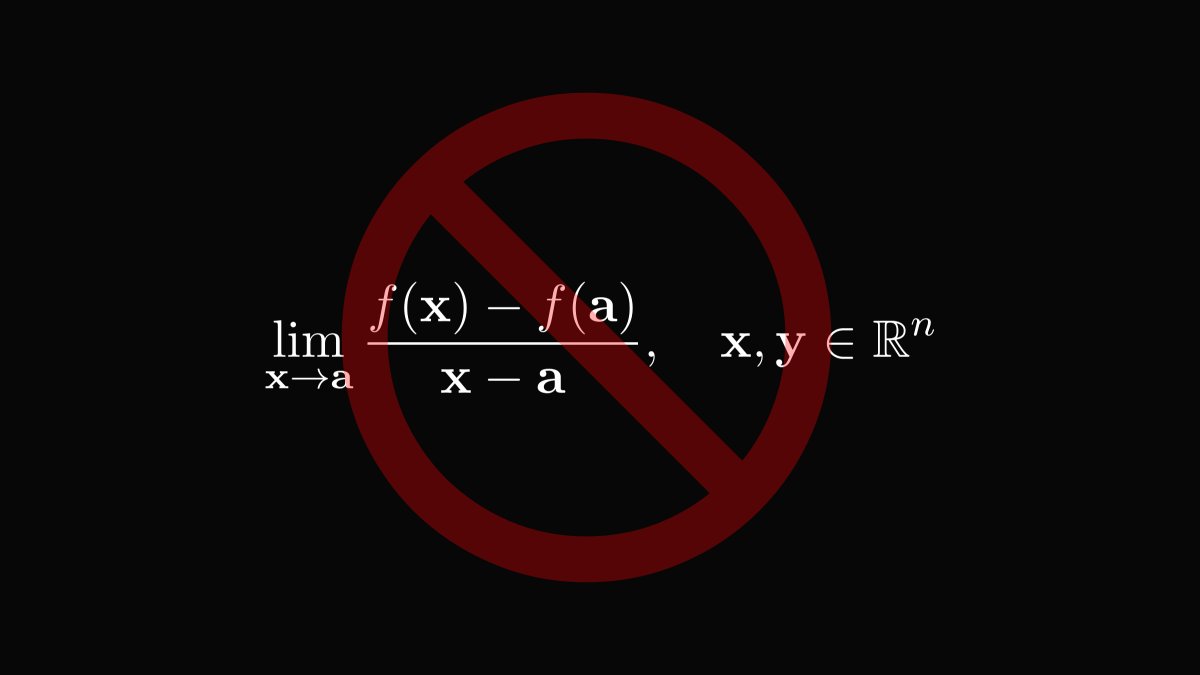 How would you define the derivative of a multivariable function? The most straightforward way would be as below, but there is a problem: division is not defined for vectors.