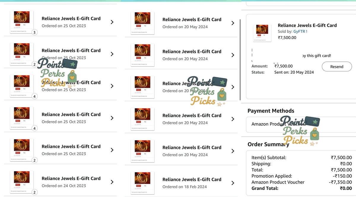 Used Amazon GVs to purchase Reliance Jewels GVs on Amazon → extra 2% discount