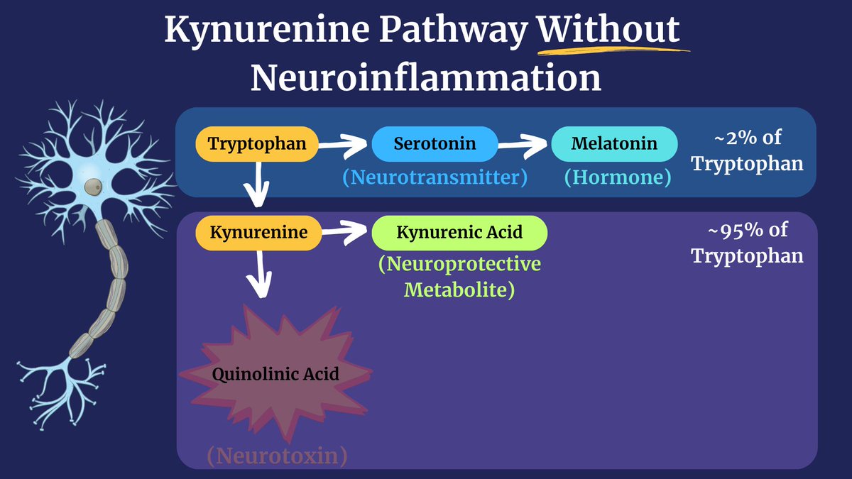 Inflammation can change the efficiency of several key enzymes in the pathway, REDIRECTING the "flow" TOWARD quinolinic acid production, a neurotoxin.