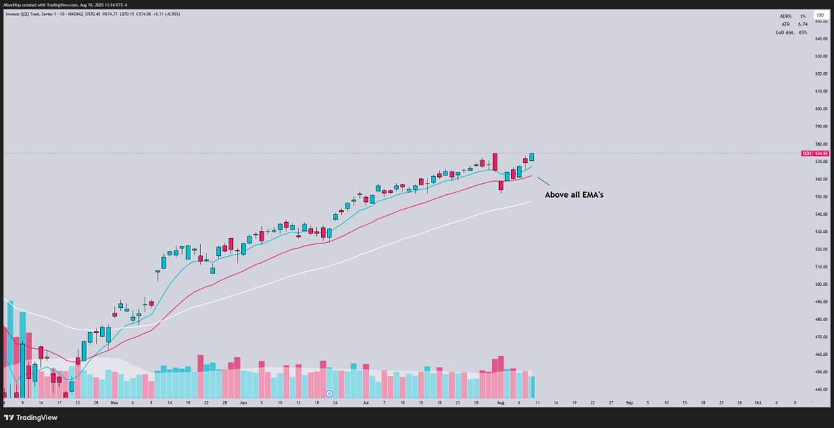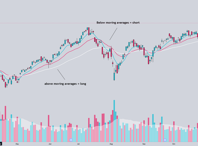 1) Whenever $SPY / $QQQ are above the 8/21/50 EMA's, we want to be long with full size/conviction