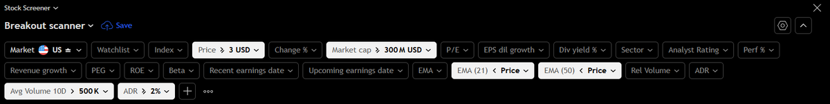 What I love about this scan is that you only get about 200-300 stocks so you can narrow it down to the best setups pretty quickly.