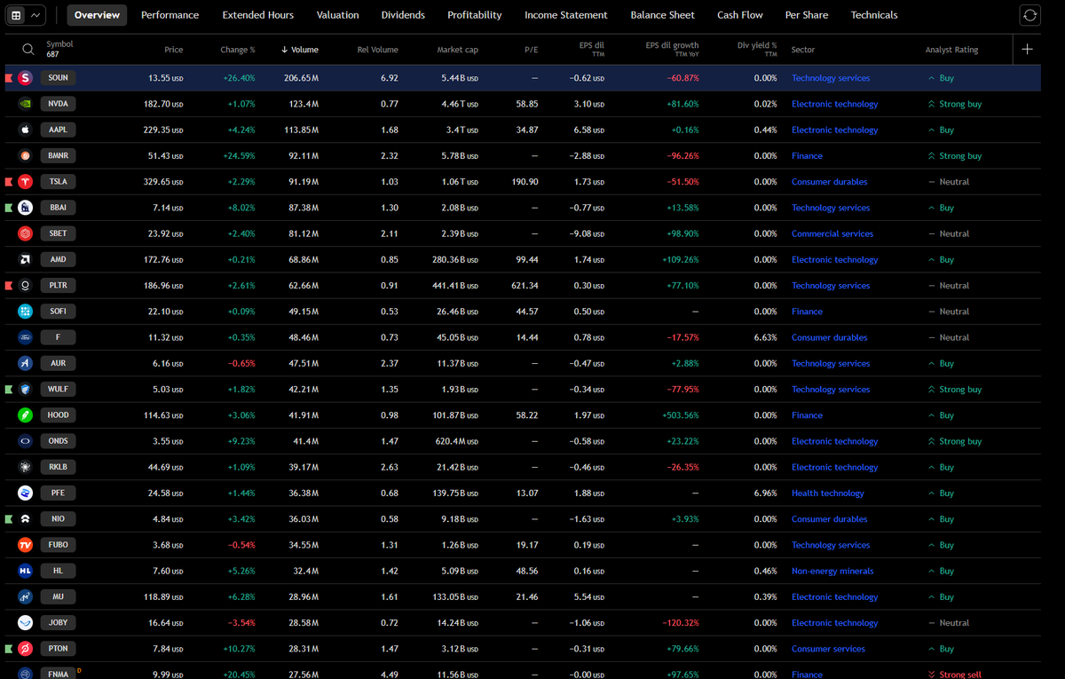 Easiest way to scan for liquid leaders is to use: tradingview.com