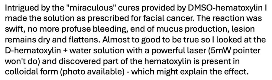 This is one reader's remarkable D-hematoxylin experience: