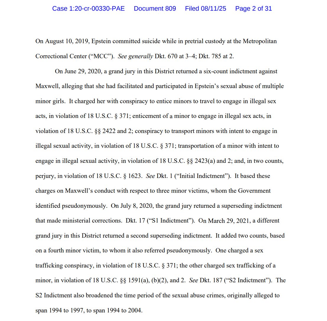 August 5, 2025- Maxwell files in opposition to the unsealing.
