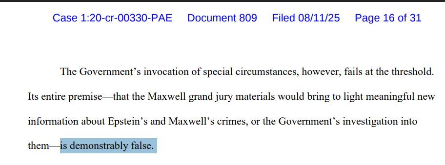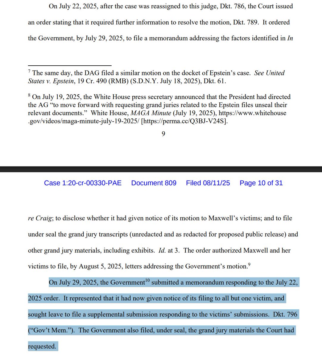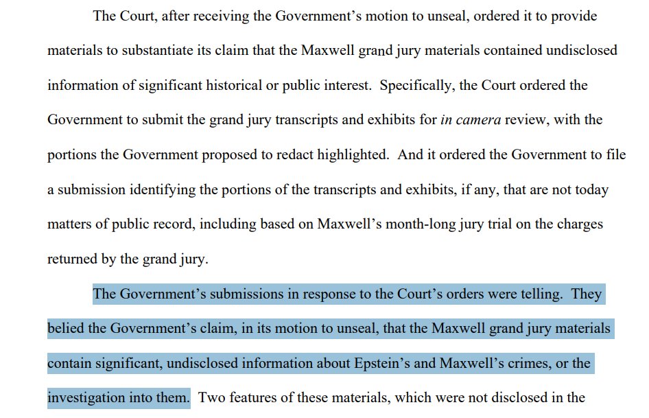 đź§µUpdate on DOJ's efforts to unseal Epstein and Maxwell grand jury material: