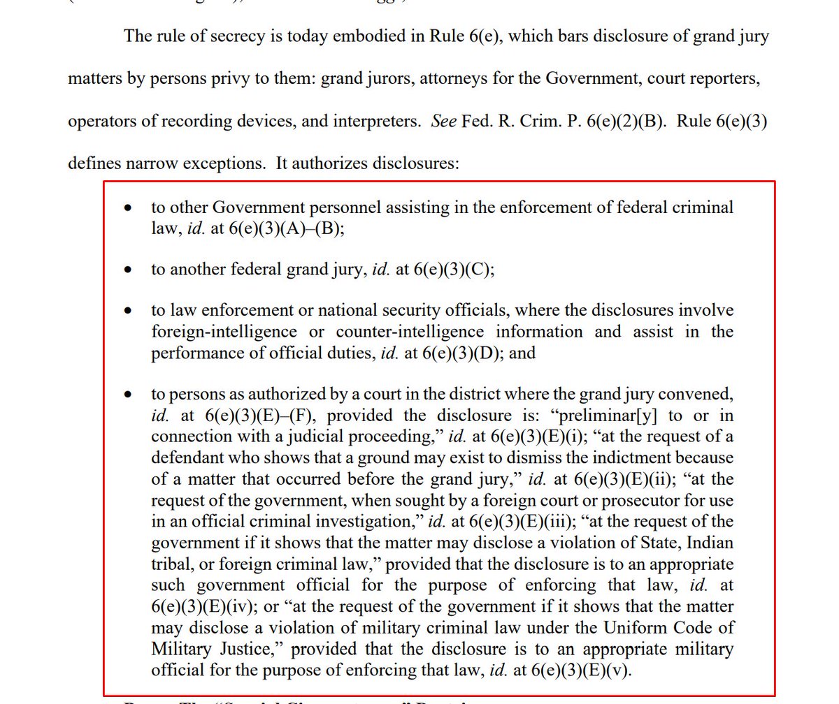 Disclosure of grand jury materials can happen if one or more of these exceptions to that secrecy are met:
