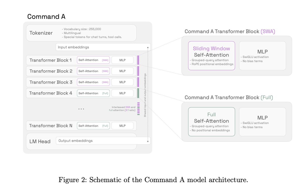 Important to start with some context about Cohere. They aren't trying to train frontier models like Meta/OpenAI/Anthropic. They focus on training models that are intelligent but specifically for enterprise tasks like RAG and multilingualism which can still be efficiently served (on premise)