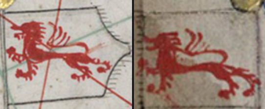 Another depiction from the late 1300s is the flag shown in the Catalan Altas World Map. The symbol of the lion bares a striking resemblance to the lion symbols used on the coins of Jalaluddin Muhammad Shah.