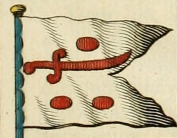 Flag of the Nawabs of Bengal according to "A general view of the flags which most nations bear at sea", a book by Alexander Justice in 1757.
