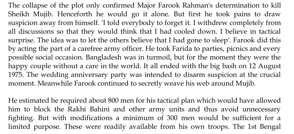 In excepts we see the type of thinking that defined Farooq as a man, and the meticulous co-ordination and planning the allowed the coup to be successful.