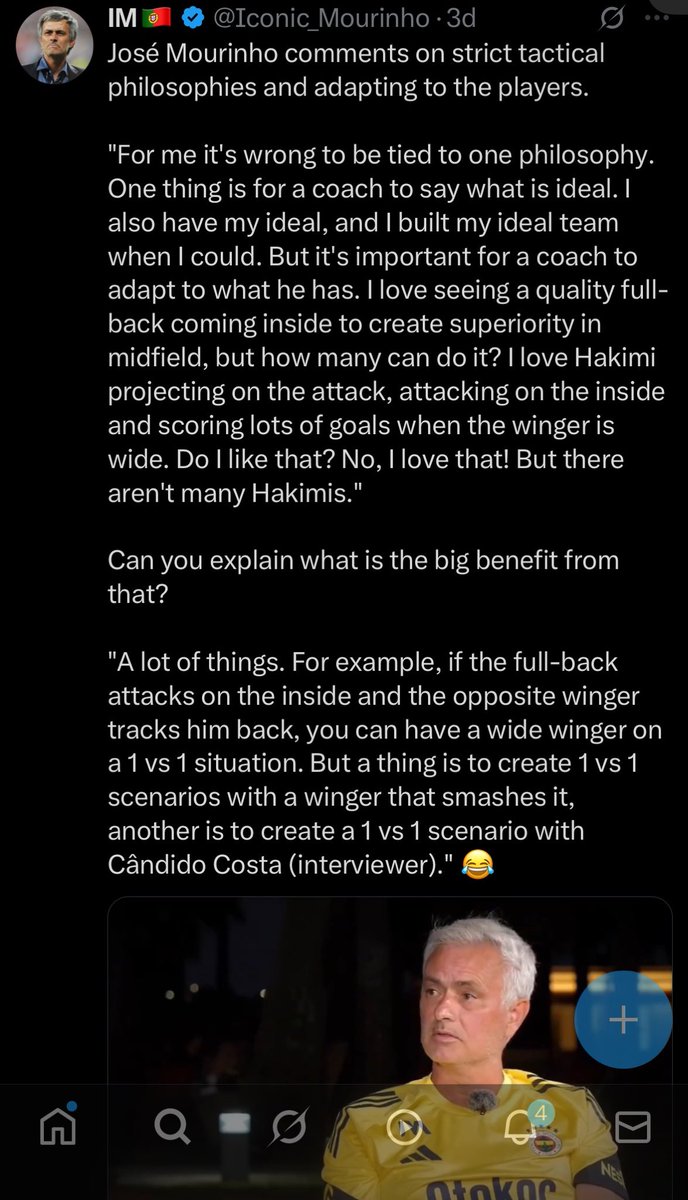 Jose Mourinho gave an interview recently where he expressed an opinion that you can see below.