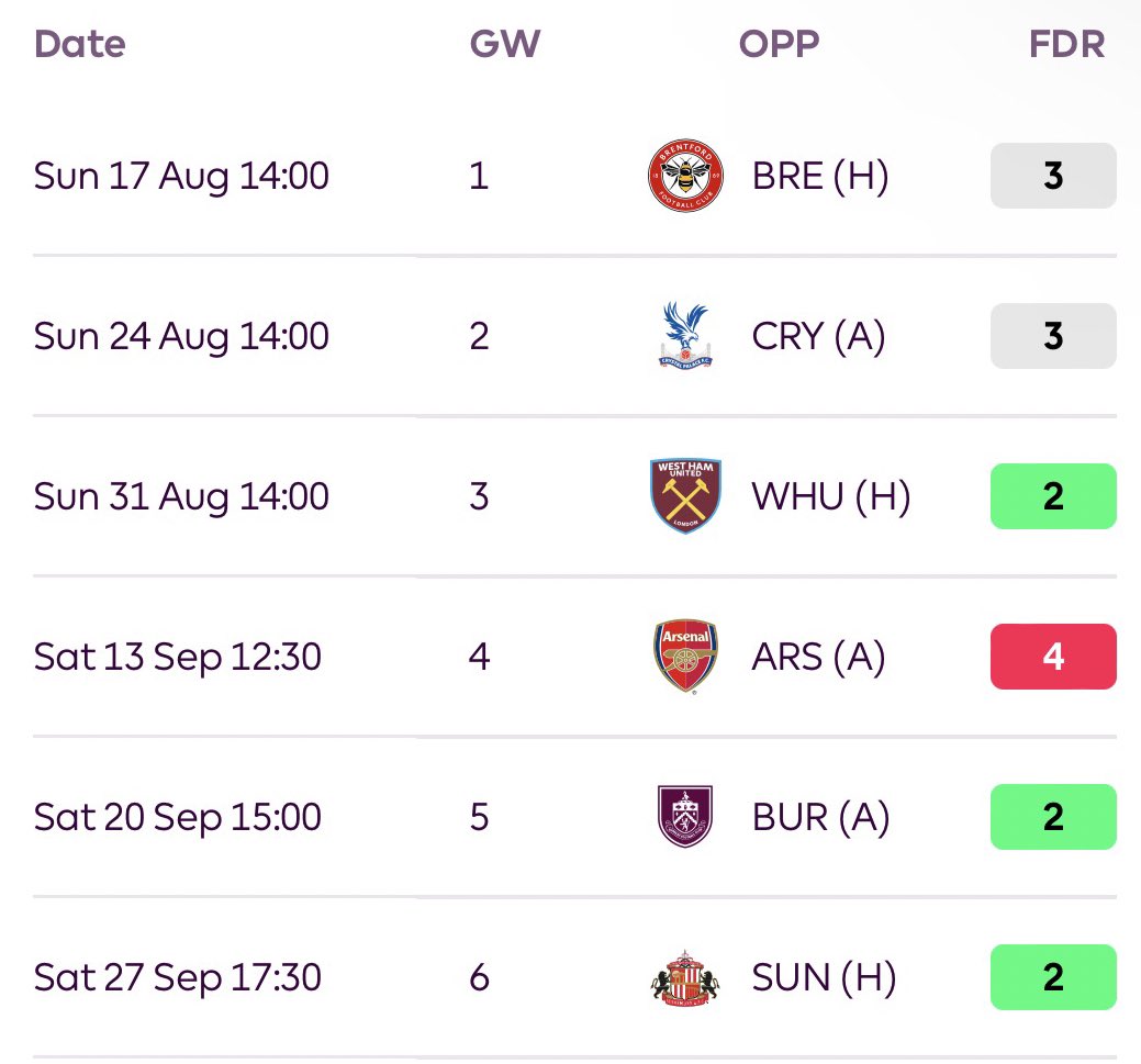 No team has a better first six fixtures from a defensive perspective, in my eyes.