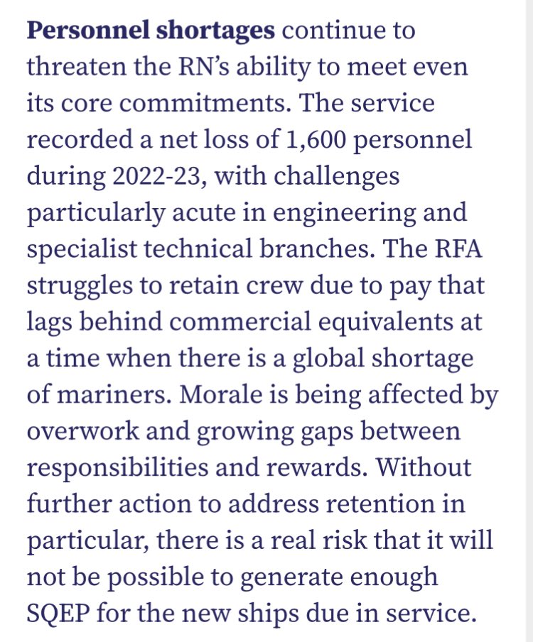 A stark appraisal of the state of the RN. But we must be wary of playing victim here and learn lessons as to what a Service must do to thrive . Because the underlying issues identified here are not unique to the RN. Let’s explore where and how it can and does go wrong: 🧵1/18