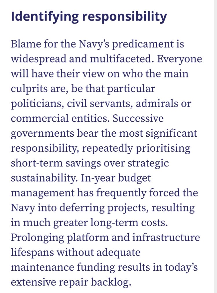 17/ It would be unfair to lay all the blame at the Navy’s feet. There have been well documented failures and inconsistencies everywhere in Defence, and often political ambition was way beyond the one it paid for. But it’s how you react to that context that you should be judged.