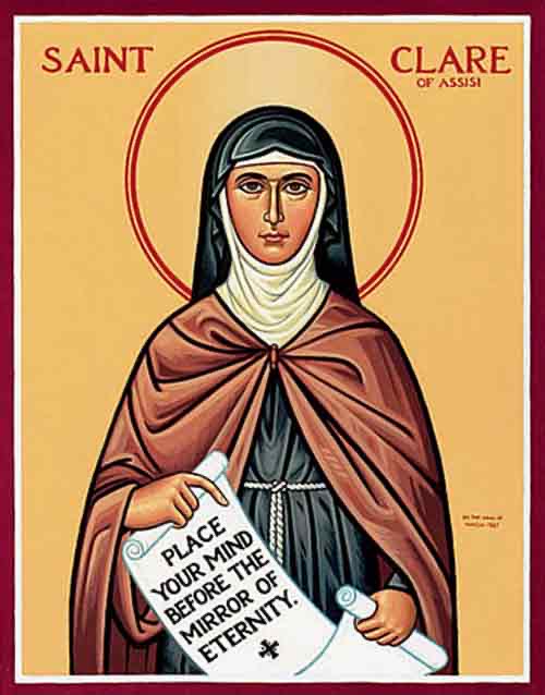 Clare of Assisi (1194-1253) was one of the first followers of St. Francis of Assisi and founded the Order of Poor Ladies, later known as the Poor Clares
