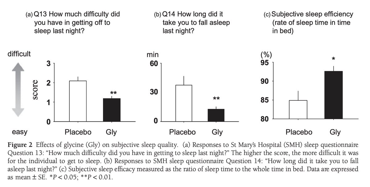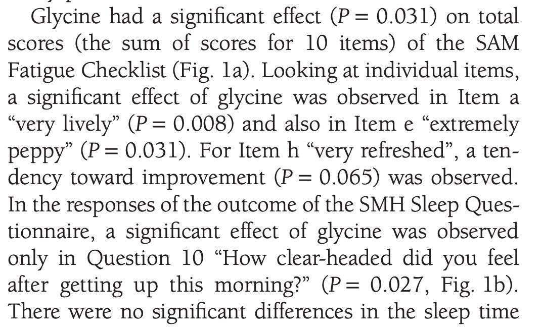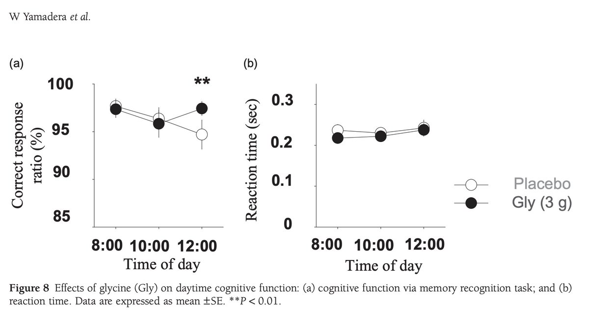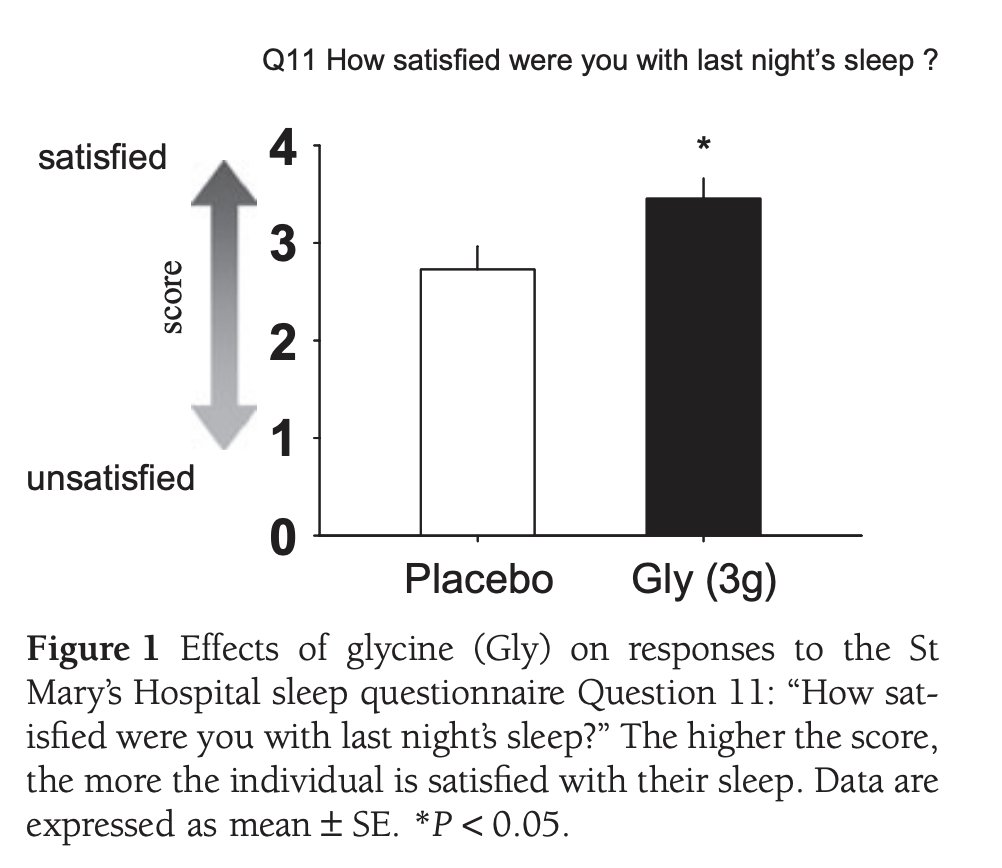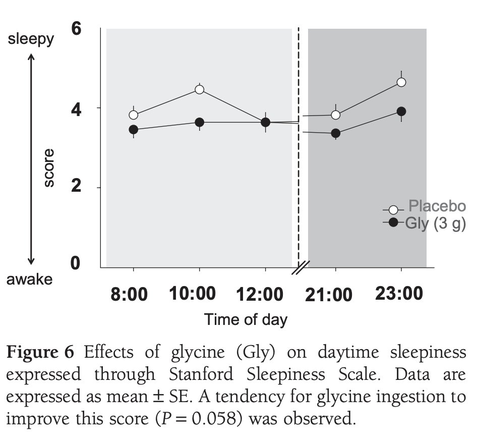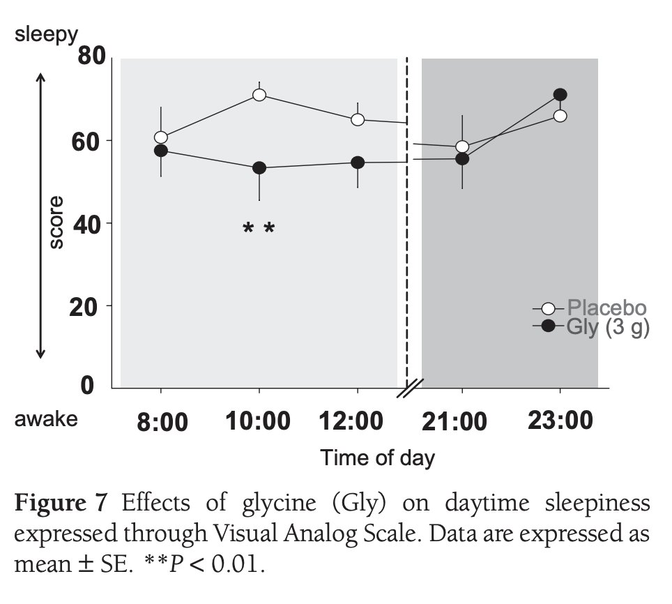 For example, a 2012 study once again showed that 3g of glycine at bed improved cognitive performance the following day, and resulted in less sleepiness.