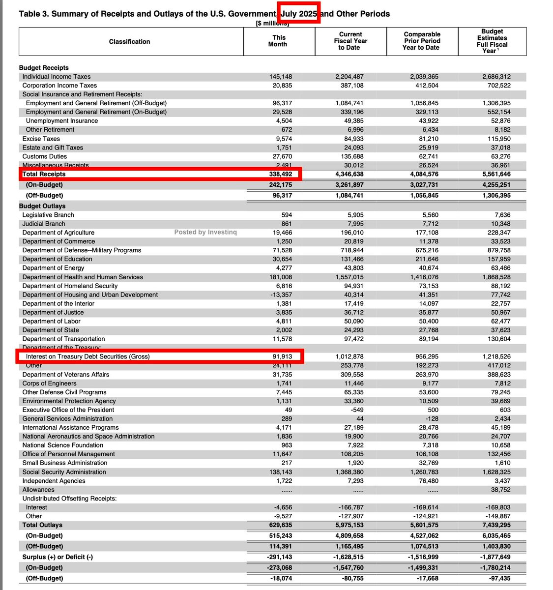 The standout number? $92.0B in interest paid in one month. That’s 27% of all revenue.