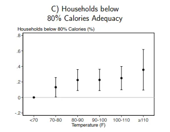 Here's the puzzle, extreme heat didn't affect average calorie consumption in households studied. When temperatures crossed 43°C for one day during growing season, overall calorie intake barely budged. So what was really happening beneath the surface?