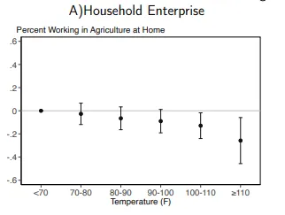 They're forced to migrate seeking jobs. They leave farms, take temporary work elsewhere after growing period to make ends meet. Single day above 43°C sends extra 0.26% away from farms to non-farm jobs outside home, creating massive labour market shifts.