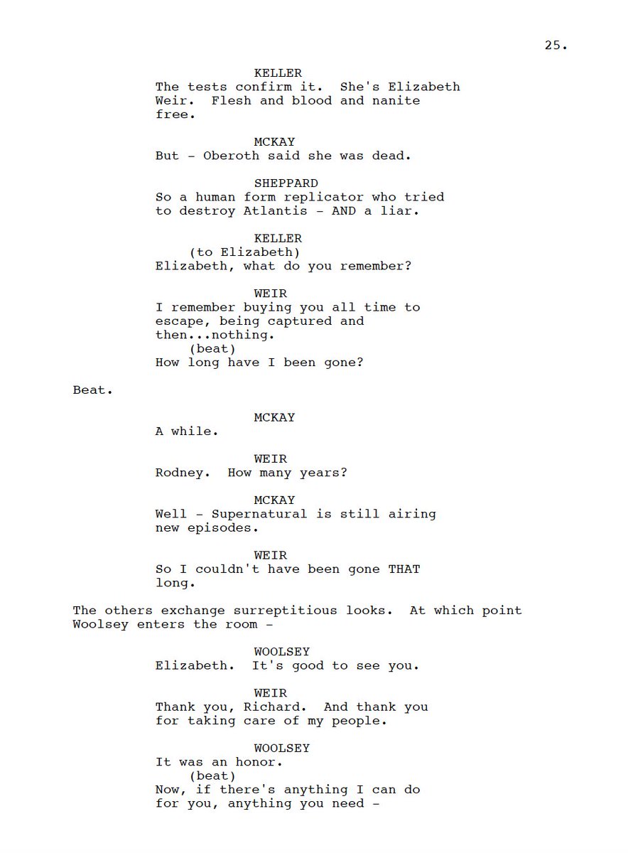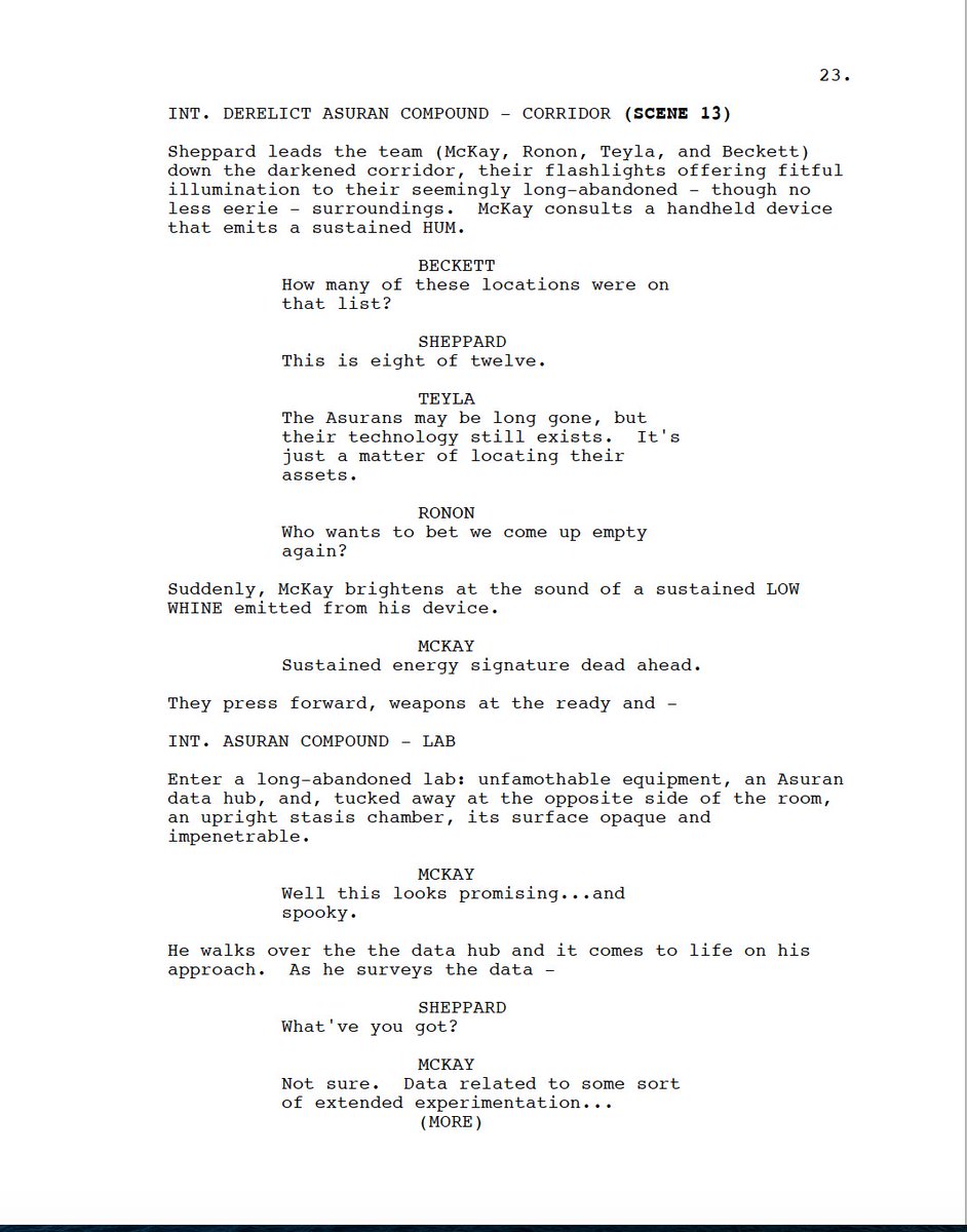 The 2-part opener, "Now What? I and II", was the unproduced Stargate: Extinction script, a time travel romp that would have seen our crew stranded in the Triangulum galaxy where Todd the wraith battles a future version of himself, Sheppard goes full Iron Man, and Atlantis ultimately return to Pegasus. 2/