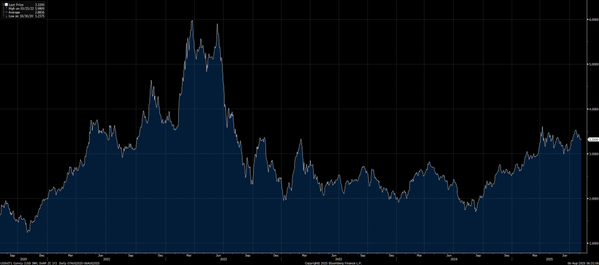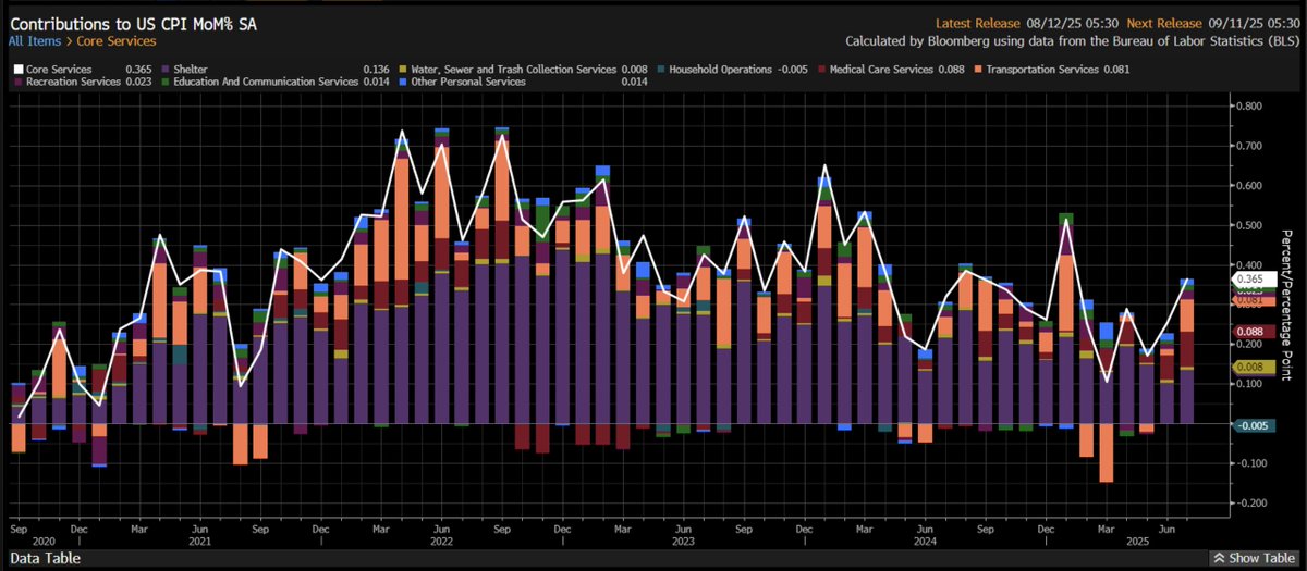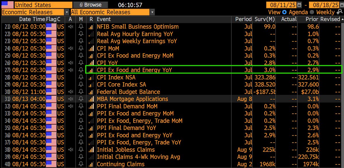 Consensus is expecting a 10bps acceleration in core CPI. What people continue to get wrong is that they think inflation is only tariff-driven and thereby transitory. This is creating a gap in markets where the Fed and other people are "looking through" inflation.