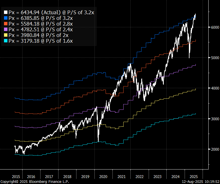 Risk assets are going to keep melting up as long the Fed refuses to hike rates in the face of rising inflation data. The money in the financial system is already spilling over into the real economy. When equity valuations are this high (p/s stdv bands below), it shows theres a ton of money in the system that will begin moving into the inflation complex.