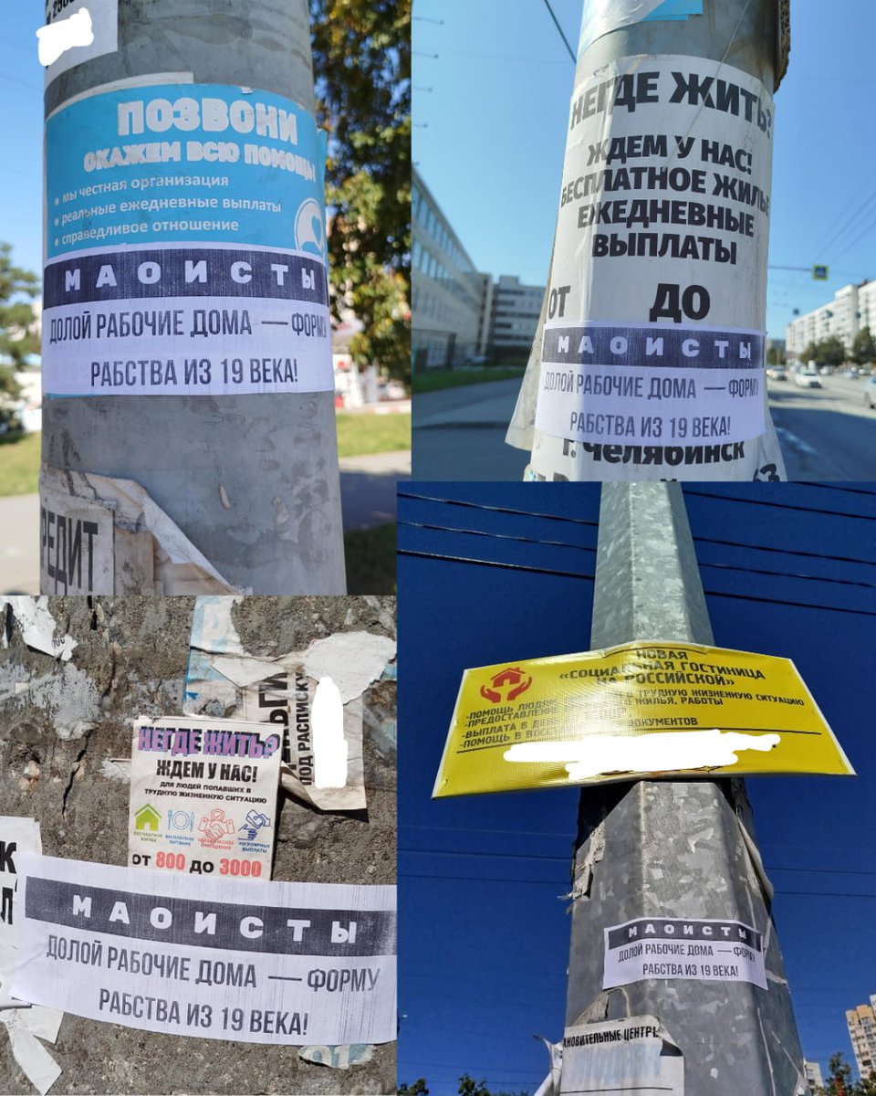 3/ A Russian Maoist group has launched a protest campaign against workhouses in Chelyabinsk. As in many other Russian cities, the workhouses are advertised everywhere and falsely claim to be "help centres" or "rehabilitation programmes".