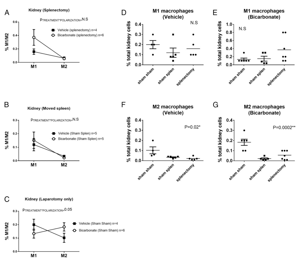 In both the kidneys and in the spleen, they had decreased inflammatory M1 macrophages, one of the primary immune cells.