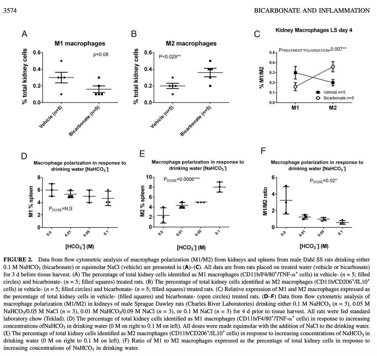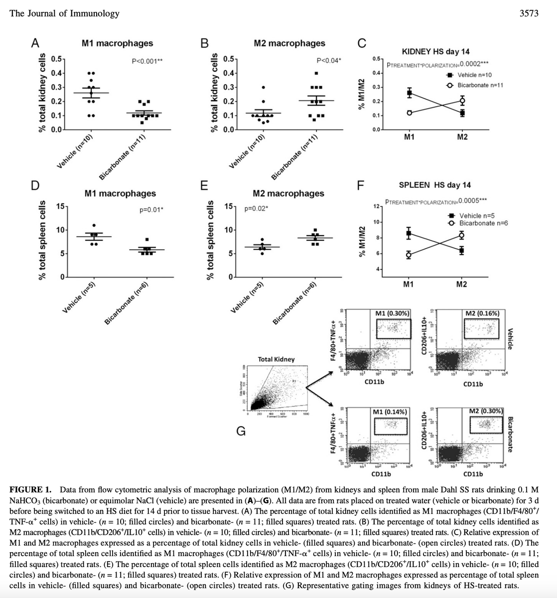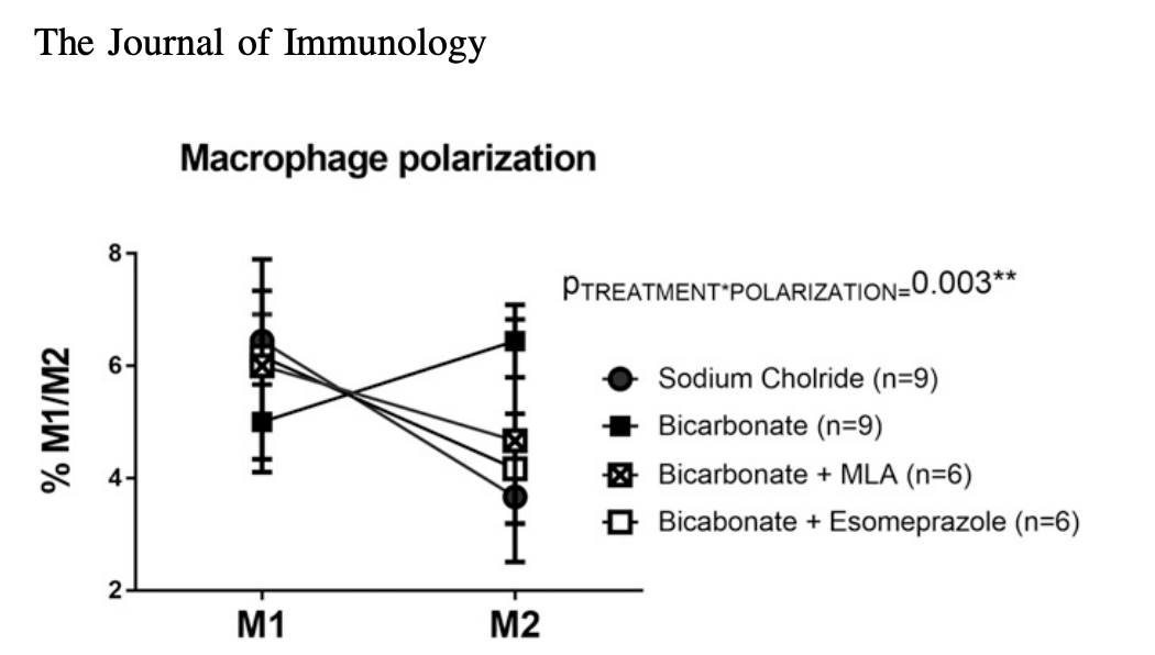 Animals consuming up to 0.1M baking soda had substantially lower ratios of M1/M2 macrophages, reflecting an anti-inflammatory skewing of these immune cells.