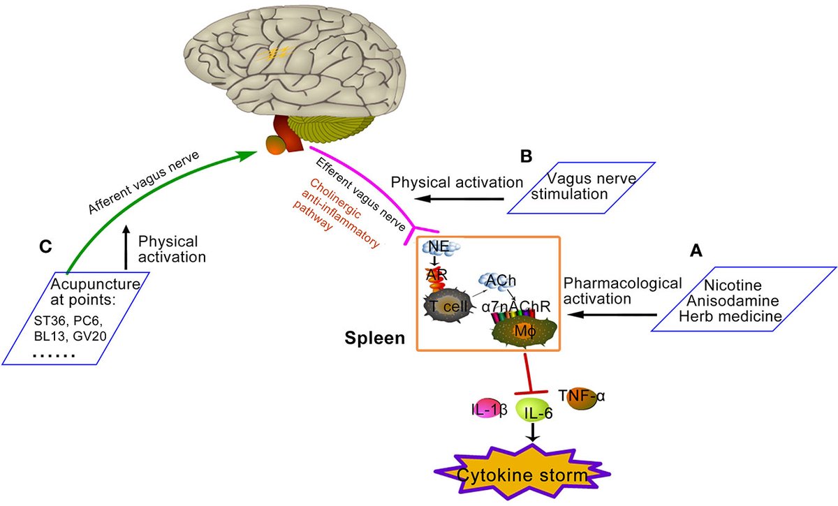 Activating the vagus nerve tends to calm these immune cells into anti-inflammatory varieties.