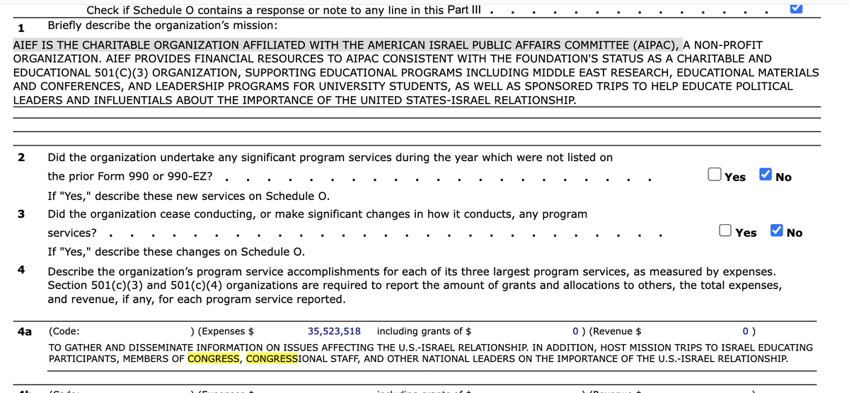 There's a charity tied to AIPAC called the American Israel Education Foundation Inc, and according to its own IRS 990 forms, its top priority is funding Congressional trips to Israel.