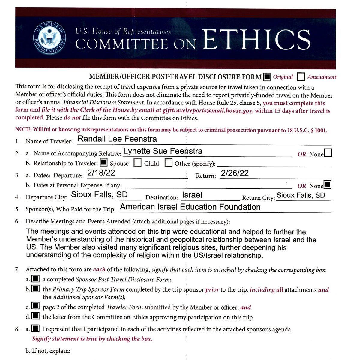 Here's an example of an ethics form for a sponsored trip.
