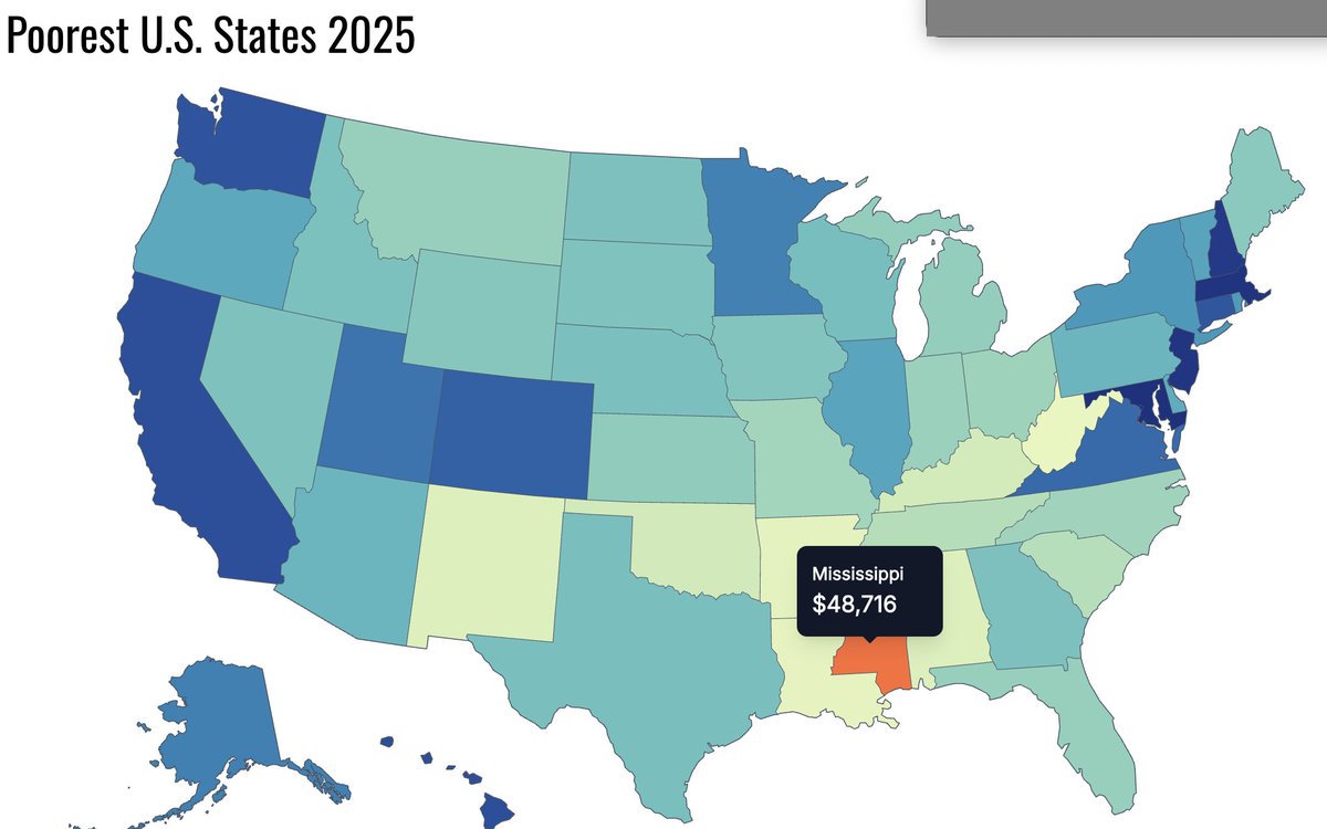 And indeed, if Puerto Rico were admitted to the United States, it'd be the poorest state by far. The next highest household income by state is more than double of Puerto Rico's - Mississippi at 49K.