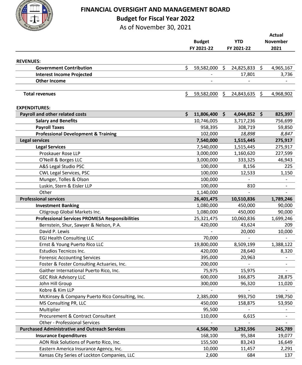 @LauraLoomer @JamesHartline Comparing the FOMB fiscals from three years ago to today shows a drastic jump in "Professional Services" :