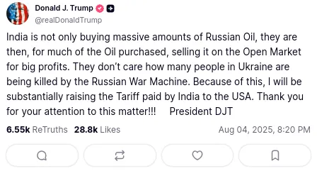 And lately, it seems like India has become Trump’s biggest punching bag. See this post, for instance: