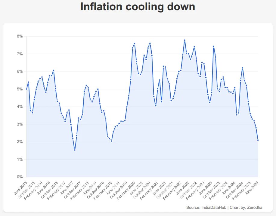 Retail inflation cooled to 2.1% in June 2025—the lowest in six years. The big driver was food prices, which slipped 0.2% year-on-year.