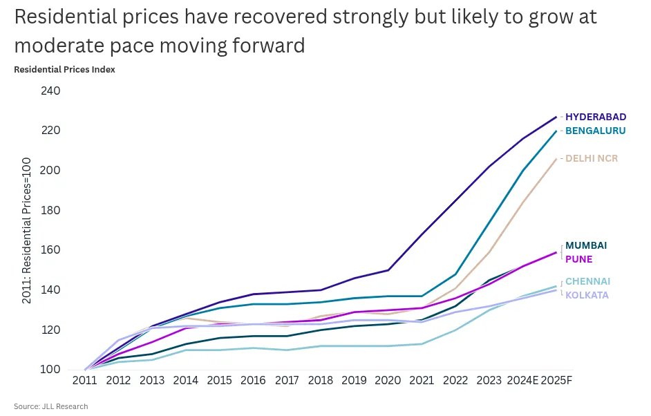 All of this is happening in the backdrop of rising property prices across major cities. NCR and Bengaluru lead with 14% year-on-year price increases in the first half of this year. The already unaffordable Mumbai, too, saw 8% growth.