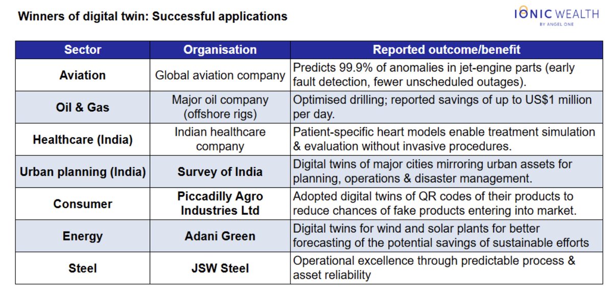 Industries deploying Digital Twins and areas of benefits: