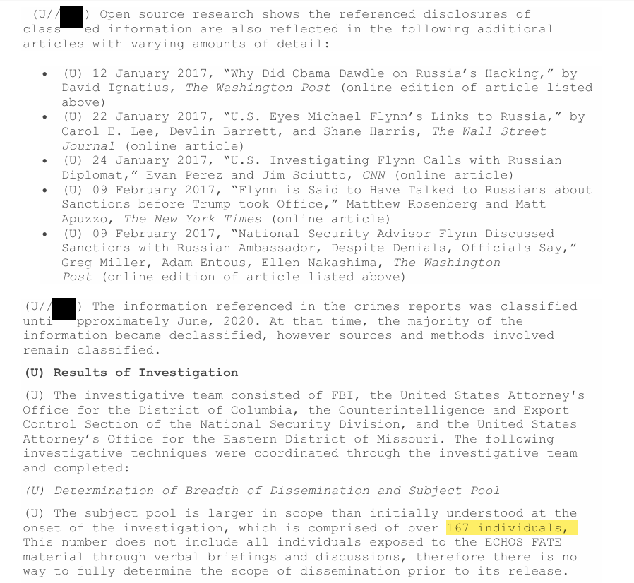 FBI investigation into Flynn-Kislyak leak involved 167 individuals. According to new docs, top WH officials were top suspects and the inquiry expanded from there.