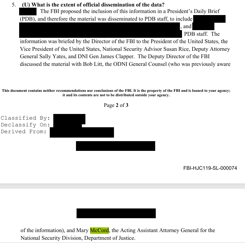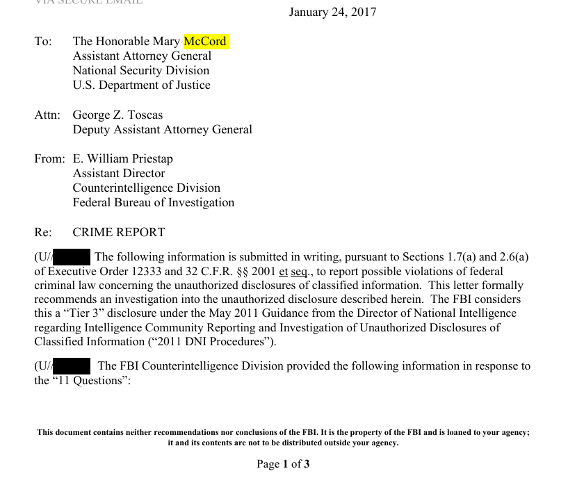 A few hours later, after initially coauthoring the PDB, the FBI (led by FBI Director James Comey) inexplicably withdraws from coordinating on the product and notifies other IC officials that the FBI will be drafting a dissent.
